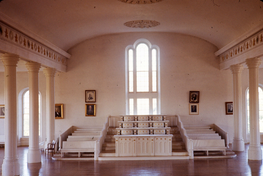 The Kirtland Temple was the first temple that the Church dedicated in this dispensation. Because the Lord had not yet revealed temple ordinances the Church did not design It for the presentation of those ordinances but instead as a spiritual school and gathering place. It consisted of two large assembly rooms, one on each floor with pulpits on both ends (Library of Congress has a floor-plan). However, as described in my post on ordinances, Joseph Smith performed an early, preliminary version of the endowment there to a few people (Church History in the Fullness of Times: Chapter Twenty and LDS Living: What We Know About the First Endowment in the Kirtland Temple).